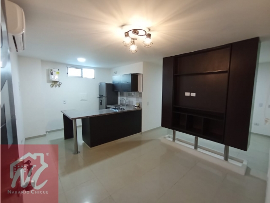 Pesos ColombianosSe arrienda Apartaestudio semi amoblado con hermosos acabados en madera ubicado en Rincon de las quintas, Consta de un ambiente en el cual tiene su area de cocina semi integral con barra y nevera, mueble para television, aire acondicionado, baño con closet, el edificio cuenta con parqueadero en sotano y area para hacer ejercicio.
